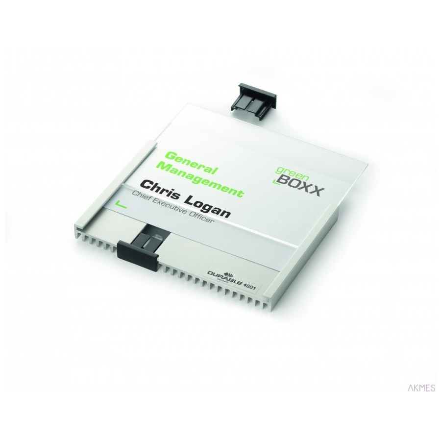 Durable INFO SIGN_- profesjonalna tabliczka informacyjna na drzwi lub obok drzwi o estetycznym i przejrzystym wzornictwie - tylna ścianka i boki wykonane z aluminium - osłona akrylowa nieodbija światła - w komplecie znajdujesię zestaw montażowy (śruby lub paski samoprzylepne) - niezbędne do opisu pomieszczeń biurowych _- jednostka sprzedaży 1kpl.