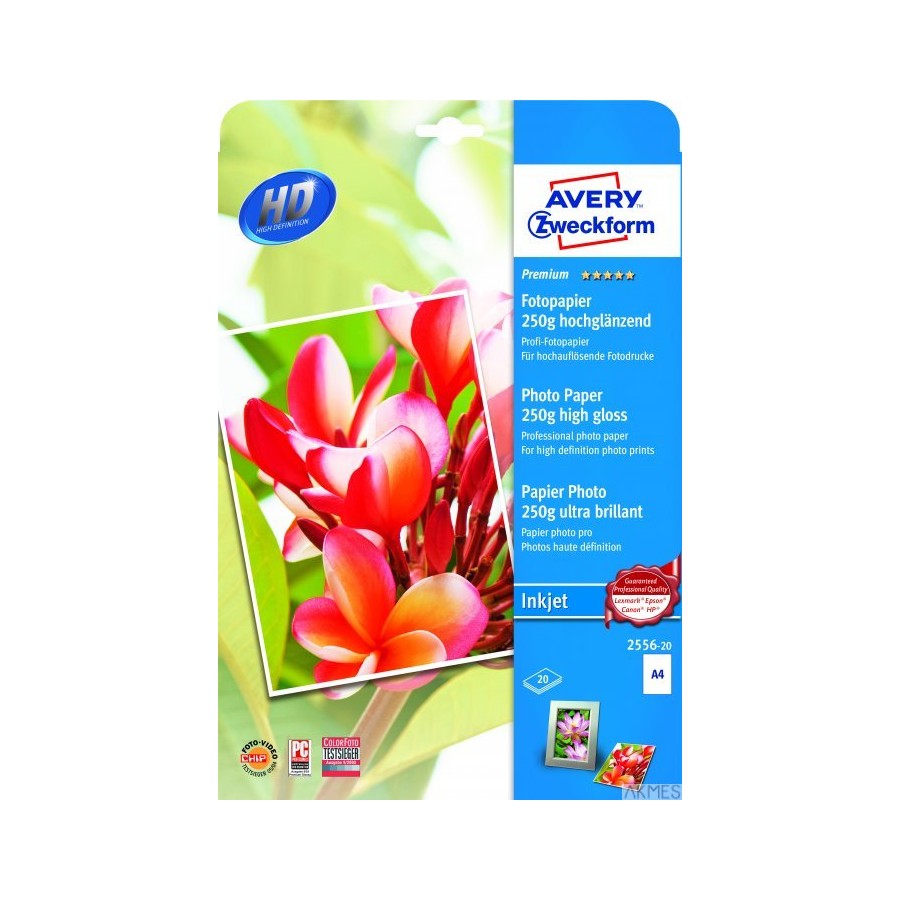 Papier foto wysokobłyszczący 2556-20 A4 20 ark. Premium, biały, 250g, Avery Zweckform