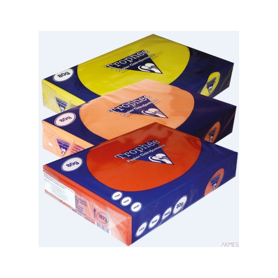 Ksero kolorowe Trophee_Oferta firmy obejmuje pełną gamę kolorów papieru kserograficznego kolorowego. W ciągłej sprzedaży dostępny jest importowany papier kolorowy firmy Papeteries de Clairefontaine z Francji. Produkowany zgodnie z certyfikatami potwierdzającymi wdrożenie środowiskowego systemu jakości oraz systemu zarządzania jakością.__Szeroka paleta kolorów oraz najwyższa jakość tych produktów zadowolą nawet najbardziej wymagających klientów. Oferowane papiery doskonale sprawdzają się w różnego rodzaju urządzeniach biurowych_- jednostka sprzedaży 1 ryza