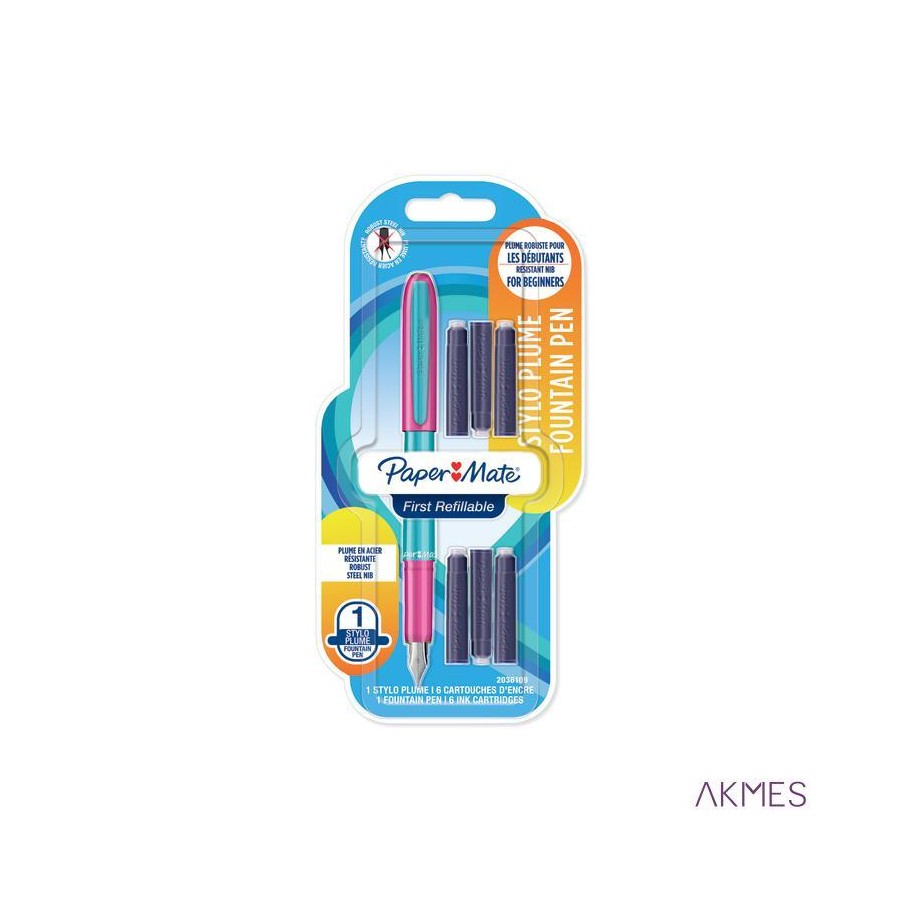 Dzięki kolorowym designom i wygodnej wymianie nabojów pióro wieczne Paper Mate My First jest doskonałe do nauki pisania piórem wiecznym.