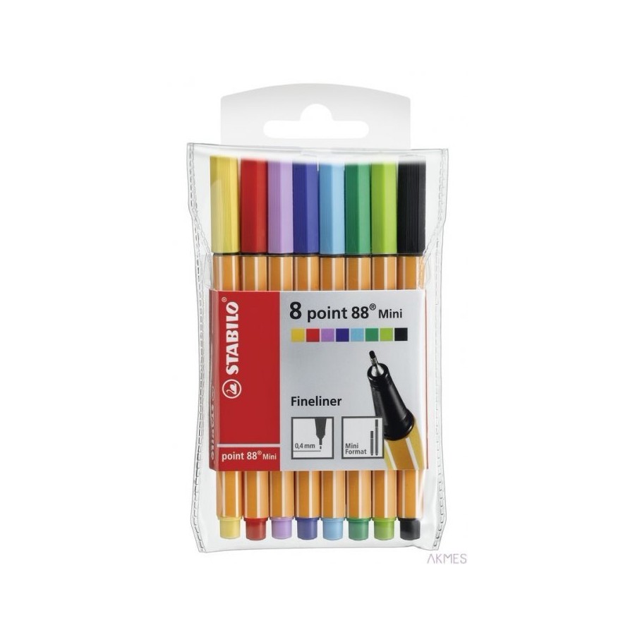Kolejny STABILO point 88, który sprawi, że konkurencja zzielenieje z zazdrości. Krótsza wersja klasycznego modelu zaprojektowana specjalnie dla mniejszych dłoni i małych torebek. _Świetny do kolorowania, rysowania i podziwiania. Dostępny w 20 kolorach.__Cienkopis nr 1 w Europie_Rozpoznawalny kształt z cienkimi pasami_Metalowa obudowa końcówki gwarantuje wysoką jakość_Tusz na bazie wody_Pozostawiony bez skuwki nie zasycha przez długi czas_Wentylowana skuwka_Dostepny w plastikowych opakowaniach po 8 i 12 kolorów