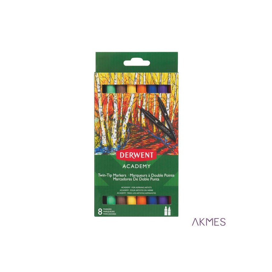 Flamastry dwustronne Derwent Academy (z pędzelkiem) 8 szt, 98206