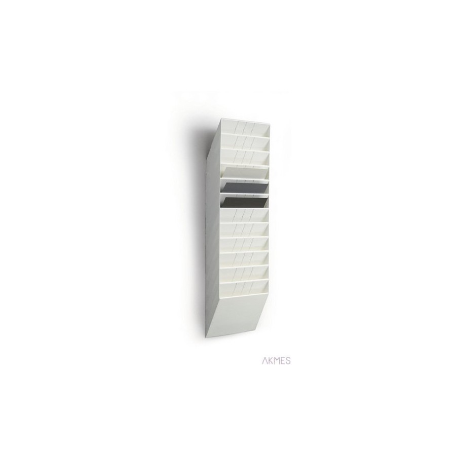 Zestaw 12 pojemników na dokumenty formatu A4 w układzie poziomym. Wymiary: 348 x 620 x 95 mm (SxWxG)