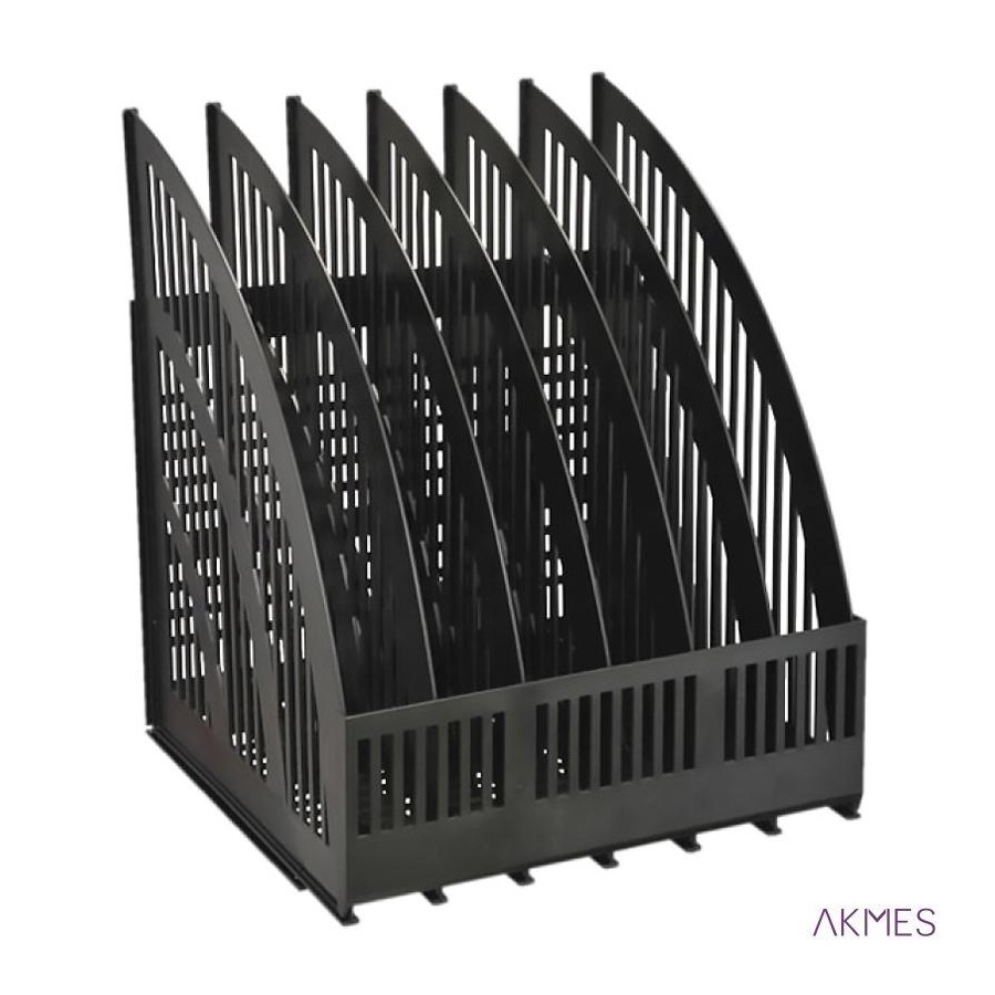 Pojemnik na dokumenty pionowy Line, szer.253 mm., ażurowy, składany, 6 komory, czarny 264199/14783 Stamm