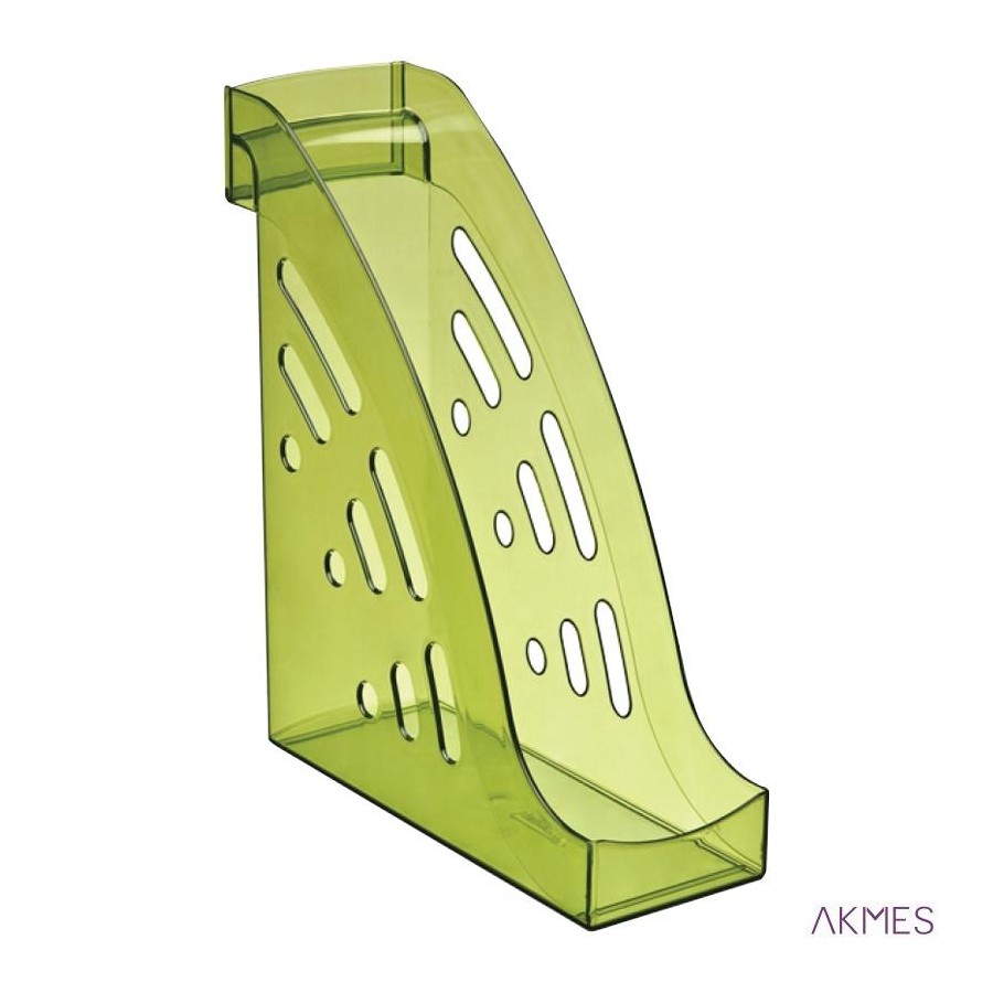Pojemnik na dokumenty pionowy"Tornado" szerokość 95 mm przeznaczony do sortowania dokumentów, teczek, czasopism. Solidna kostrukacja wraz z uchwytem do przenoszenia oraz progiem zabezpieczającym wypadniu dokumentów służy do przechowywania ciężkich folderów i katalogów. W przedniej części znajduje sie miejsce na wymienną etykietę opisową, która jest umieszczona w specjalnej kieszeni. Pojemnik znacząco oszczędza miejsce na biurku i na półce. Gładkie linie, oryginalny design. Boczne scianki mają dekoracyjne otwory. Materiał polistyren. Wymiary 30,0 cm x 22,5 cm x 9,5 cm. Kolor przyciemniany limonkowy.