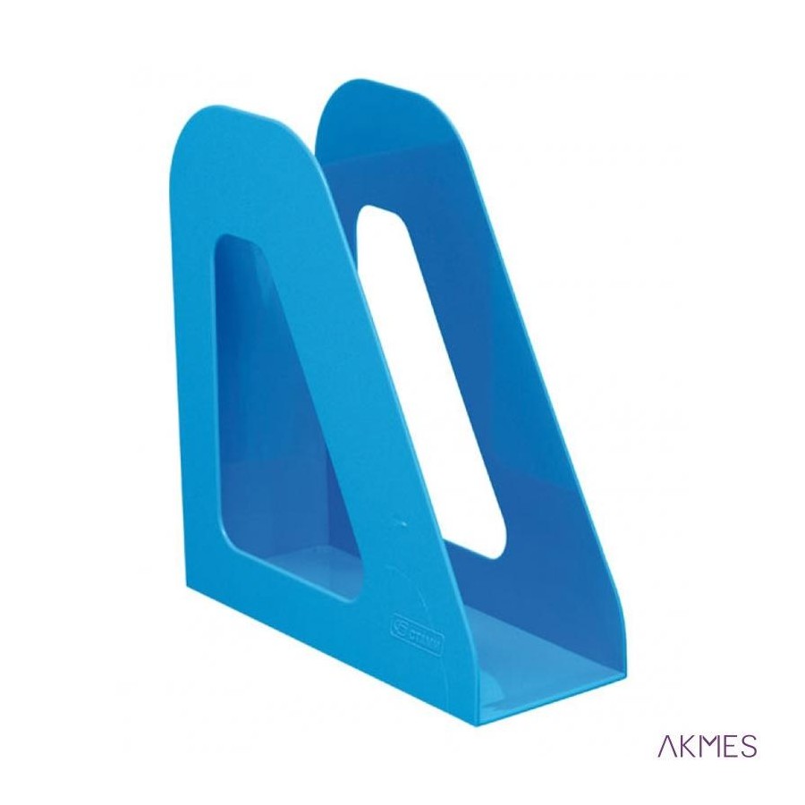Pojemnik na dokumenty pionowy"Favorit" szerokość 90 mm na dokumenty i foldery A4. Nowoczesny design, błyszcząca powierzchnia. Kompaktowy, bez progu przedniego co umożliwia bezpośrednio wysuwanie dokumentów. Lekki, wytrzymały, stabilny korpus z jednym dużym wycięciem na boku. Materiał polistyren. Wymiary 23,5 cm x 24,0 cm x 9,0 cm. Kolor niebieski.
