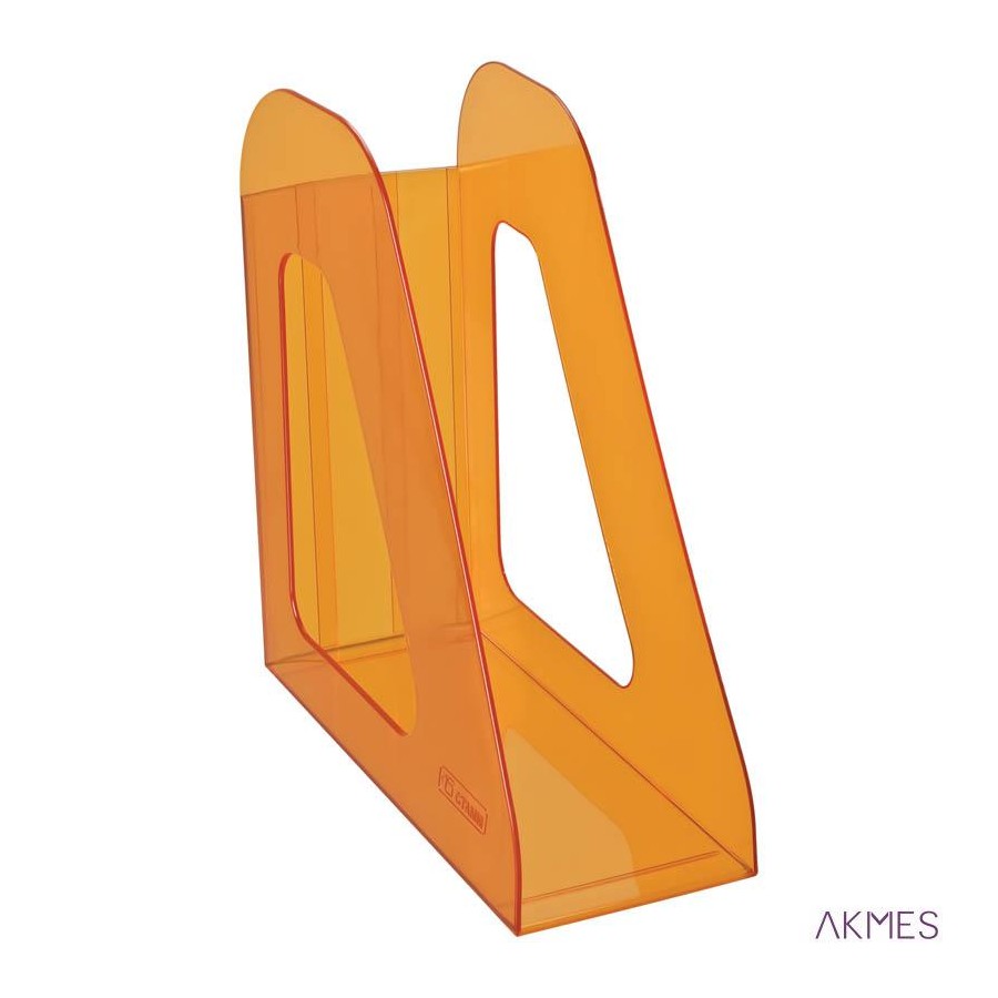 Pojemnik na dokumenty pionowy"Favorit" szerokość 90 mm na dokumenty i foldery A4. Nowoczesny design, błyszcząca powierzchnia. Kompaktowy, bez progu przedniego co umożliwia bezpośrednio wysuwanie dokumentów. Lekki, wytrzymały, stabilny korpus z jednym dużym wycięciem na boku. Materiał polistyren. Wymiary 23,5 cm x 24,0 cm x 9,0 cm. Kolor przyciemniany mango.