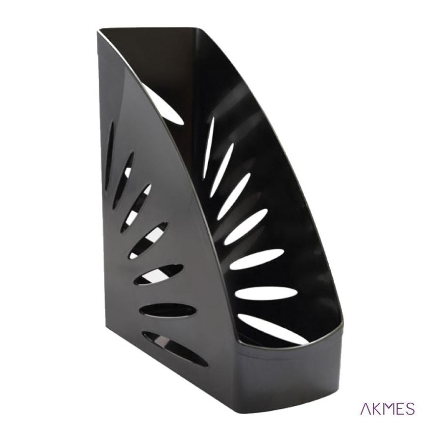 Pojemnik na dokumenty pionowy"Tropic" szerokość 110 mm do przechowywania ciężkich dokumentów i folderów A4. Stabilny, pojemny, wytrzymały korpus. Orginalne wycięcia tworzą boczny wzór. Gładka, błyszcząca powierzchnia. Zabiezpieczający próg przed wysuwaniem sie dokumentów. Materiał polistyren. Wymiary 24,5 cm x 20,3 cm x 11,0 cm. Kolor czarny.