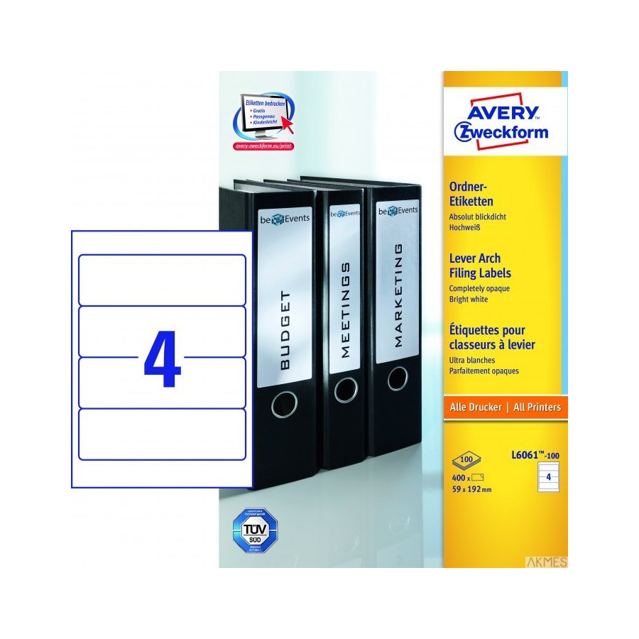 Etykiety na segregatory L6061-100 59x192 100ark Avery Zweckform