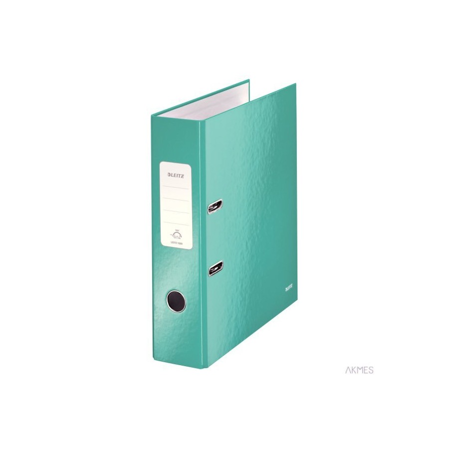Segregator z mechanizmem WOW Leitz 180___innowacyjny segregator z mechanizmem dźwigniowym 180_ WOW__okładki oklejone kolorowym papierem i zabezpieczone folią nadającą połysk__na grzbiecie samoprzylepna etykieta, którą można łatwo usunąć__dwa okute otwory na okładce z blokadami, na których dopina się okładka__okres gwarancji na mechanizm: 5 lat__jednostka sprzedaży 1 sztuka.