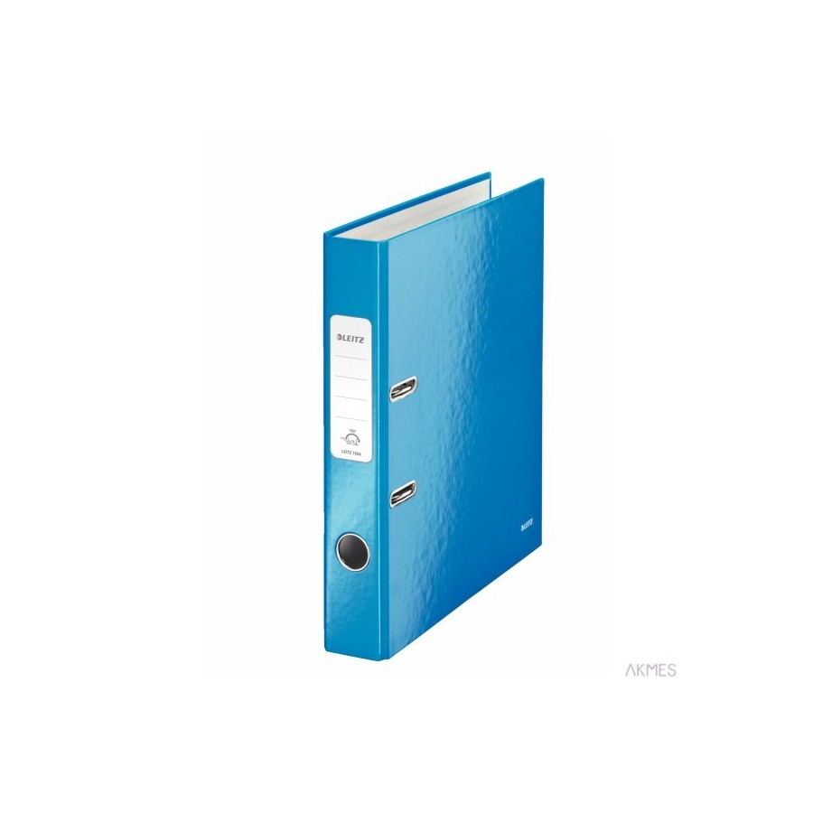 Segregator z mechanizmem dźwigniowym 180_ WOW Leitz__Innowacyjny segregator, z opatentowanym mechanizmem, który otwiera się o 180_, co ułatwia szybsze przekładanie dokumentów w segregatorze o 20%._- Okładki oklejone kolorowym papierem, który został zabezpieczony specjalną folią nadającą połysk_- Na grzbiecie otwór na palec, ułatwiający wyjmowanie segregatora z półki_- Na grzbiecie samoprzylepna etykieta, którą można łatwo usunąć_- Dwa okute otwory na przedniej okładce z blokadami, na których dopina się okładka segregatora_- Grzbiet 85mm mieści do 600 kartek, grzbiet 50mm mieści do 350 kartek_- 5 lat gwarancji na mechanizm_- jednostka sprzedazy 1 sztuka