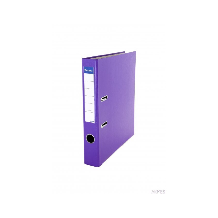 Segregator DOTTS A4 Wykonany z grubego kartonu pokrytego na zewnątrz kolorową folią PP, a wewnątrz wyklejony jasnoszarym papierem. Na grzbiecie dwustronna wymienna etykieta. Dolne krawędzie wzmocnione niklowymi okuciami. Wzmocniony otwór na palec na grzbiecie. Dostępny w 11 kolorach