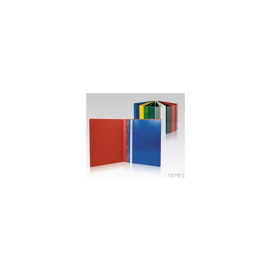 Wykonany z wysokiej jakości folii PCV z przezroczystymi kieszeniami na przedniej okładce i grzbiecie, które umożliwiają umieszczenie materiałów reklamowych. Wyrób wyposażony w mechanizm 4-ringowy w kształcie litery _D_. Szerokość grzbietu 4 cm. Zamek umieszczony na tylnej okładce.