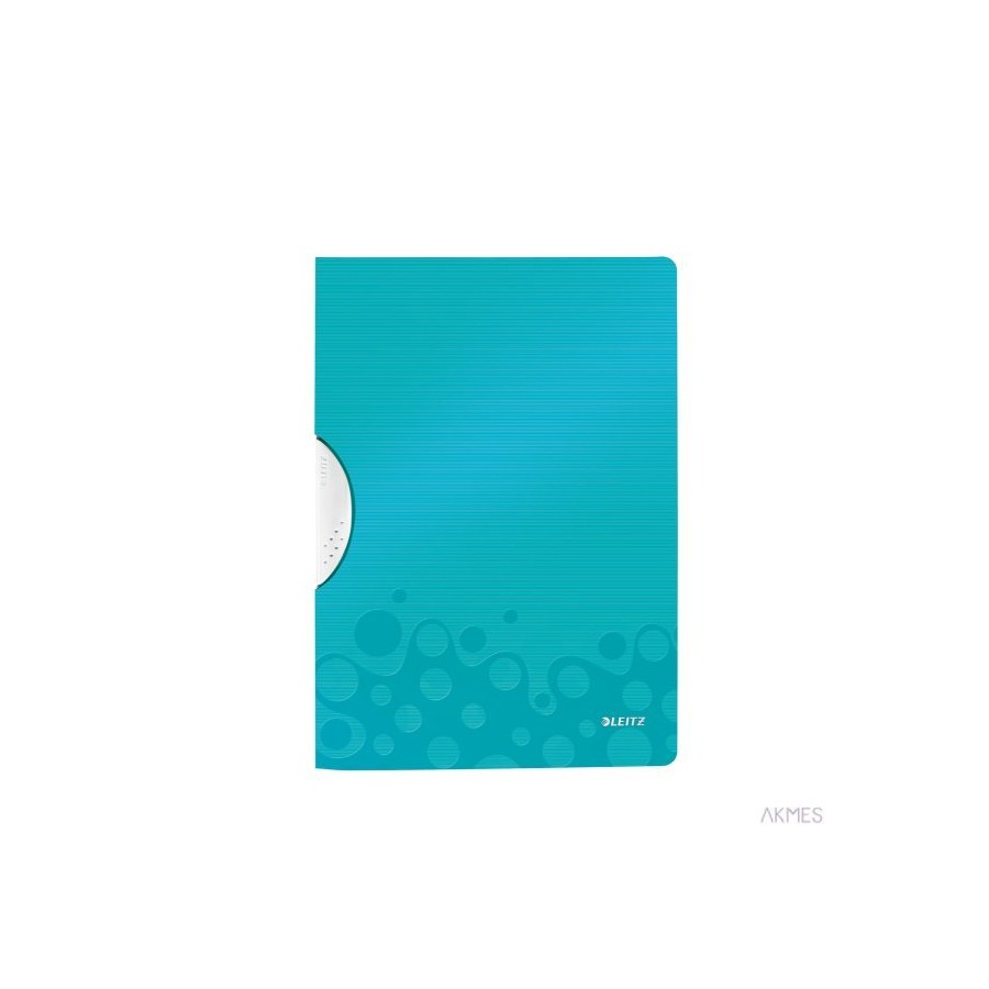 Skoroszyt z klipsem Leitz WOW__łatwa obsługa dzięki ergonomicznemu nasuwanemu klipsowi__dostępny z półprzezroczystymi okładkami i solidnym klipsem__metalowo-plastikowy klips z wzmocnioną siłą docisku_bezpieczenie przytrzymuje kartki__mieści 40 kartek A4 (80 gsm) - nieprzedziurkowanych__przednia okładka rozkłada się płasko po otworzeniu__modne, ponadczasowe wzornictwo dla profesjonalistów__jednostka sprzedaży 1 sztuka.