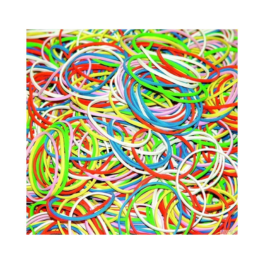 gumki recepturki, wytrzymałe i elastyczne_wykonane z materiału o zwiększonej domieszce kauczuku (80%)_średnica: 60mm_grubość/szerokość: ok. 1,5x1,5mm_rozciągliwość w warunkach laboratoryjnych: 650-700%_waga opakowania: 1000g_ilość gumek: 1350 (_ 2%)_mix kolorów
