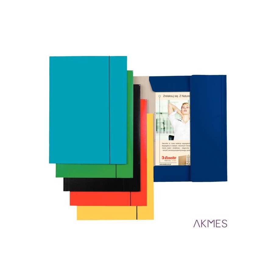 Teczka lakierowana z gumką Esselte- na dokumenty o formacie A4- wykonana z mocnego, barwionego i lakierowanego z jednej strony kartonu- z mocną gumką i trzema zakładkami chroniącymi dokumenty przed wypadaniem- jednostka sprzedaży 1 sztuka .