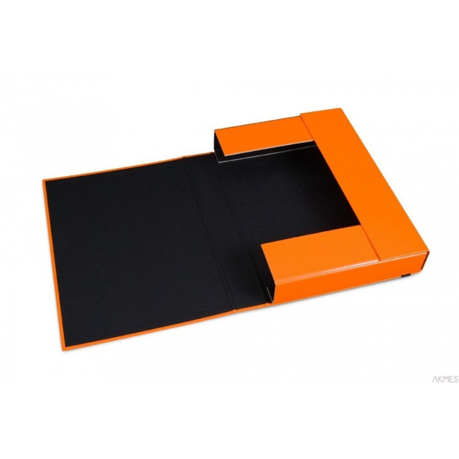 Teczka typu Box, o szerokości grzbietu 5 cm, wykonana z twardej 2mm tektury powleczonej folią PP. Posiada czarną wyklejkę z wysokiej jakości surowca. Zamykana na gumkę._ Innowacyjna gama kolorystyczna