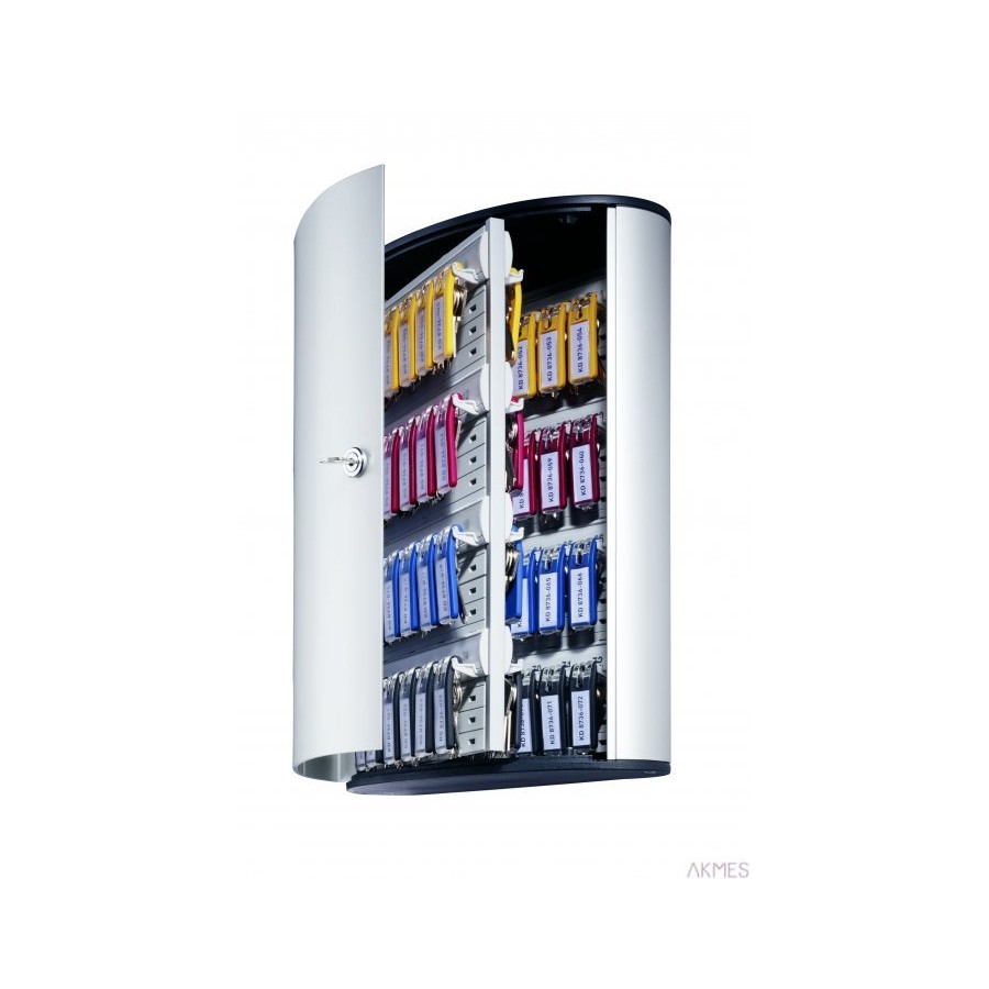KEY BOX - skrzynki na klucze. Szafka na klucze z zawieszkami Durable_- ponadczasowe wzornictwo_- obudowa wykonana z aluminium_- każda skrzynka zamykana na zamek (w komplecie dwa klucze _ oprócz skrzynki na 12 kluczy zamykanej na rygiel)_- każda skrzynka wyposażona w woreczek z sześcioma zawieszkami na klucze w różnych kolorach, zawieszki te służą jako zapas_- w zestawie znajdują się kołki niezbędne do montażu skrzynki na ścianie_- Wielkości odpowiednio na 12, 18, 36, 54, 48 i 72 klucze._- jednostka sprzedaży 1 sztuka
