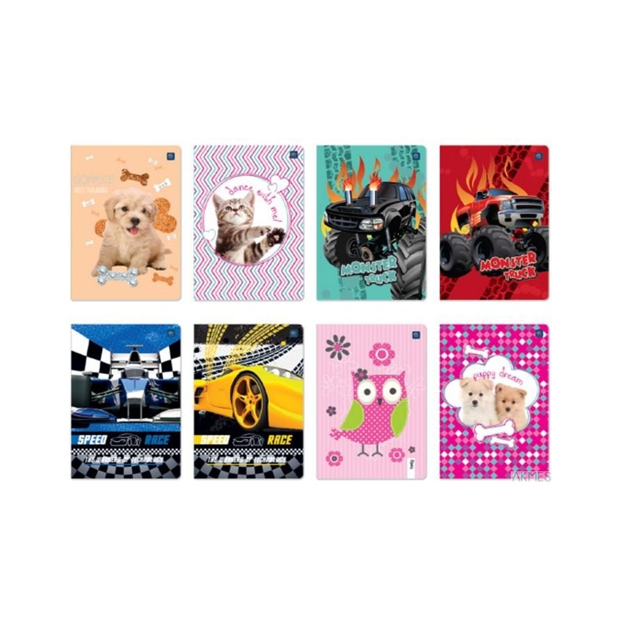 Zeszytokładka pokryta lakierem UVzaokrąglone rogi (format A5)bogata kolorystyka i dużaróżnorodność wzorów okładekjednostka sprzedaży 1 sztuka.